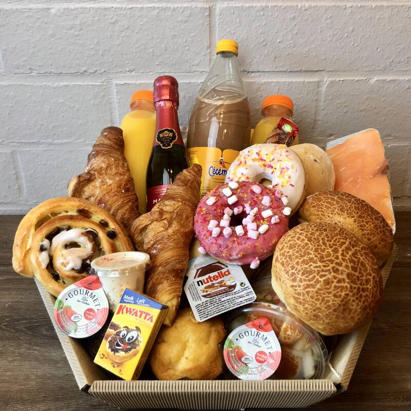 Een ontbijtmandje aan huis geleverd, ideaal op een luie ochtend of als verrassing.